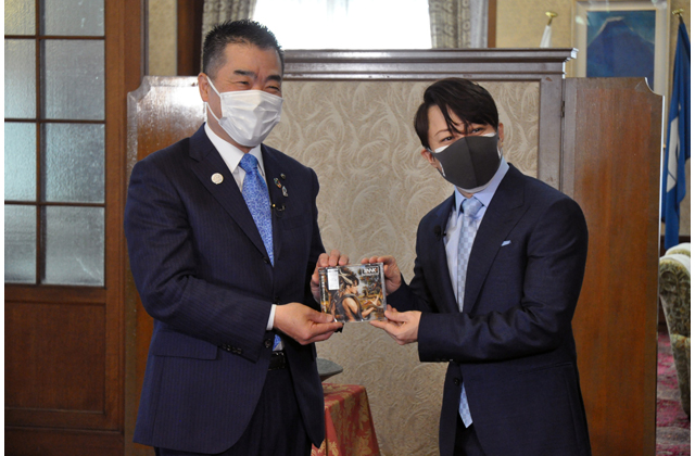 この中で西川さんは「(コロナ感染予防に)しっかり気を引き締めてみなさんに安心してもらいたい」と語り、小椋市長から同市の活性化に助力を求められると、笑顔で快諾していた。