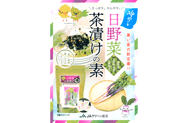 また、JAグリーン近江では「切漬」をみじん切りにし、フリーズドライ加工してつくった「日野菜茶漬けの素」(5・3グラム×5袋入り、同550円)も販売中。夏にさっぱりと食べる「冷やし茶漬け」の食べ方などを広報している。