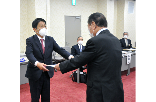 付与式では、選挙会を経て改めて4氏の当選が確認され、県選挙管理委員会の世古正委員長から当選人らに当選証書が手渡された。