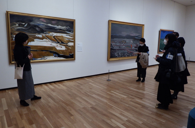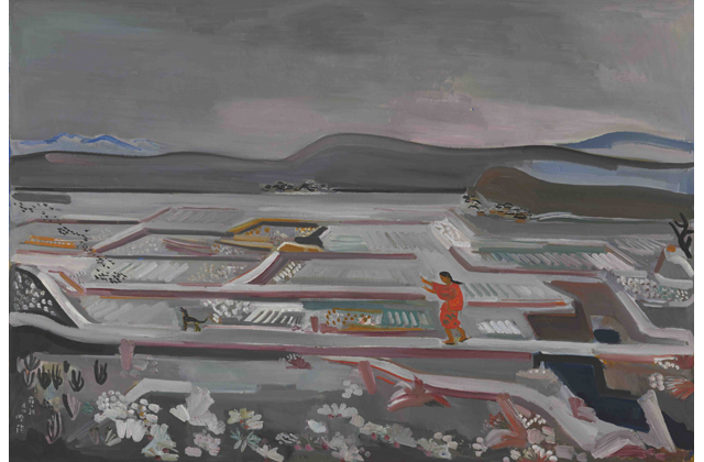 同展では、20年ぶりの県内公開となる代表作の「霜の朝」(1934、東京国立近代美術館、第15回帝展特選)、「水村雪後」(1938、京都国立近代美術館、第6回東光会展出品作)など36件(日記、スケッチなど関連資料含む)が展示される。会期は来年2月20日まで。