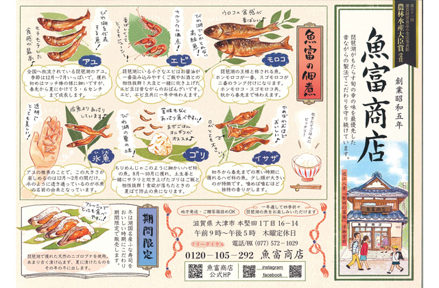 改装後、店に立ち寄る観光客が次第に増えた。さらに、郵送で購入を希望するリピーターも増え、今では全国から琵琶湖ならではの味覚を求めて注文が入る。