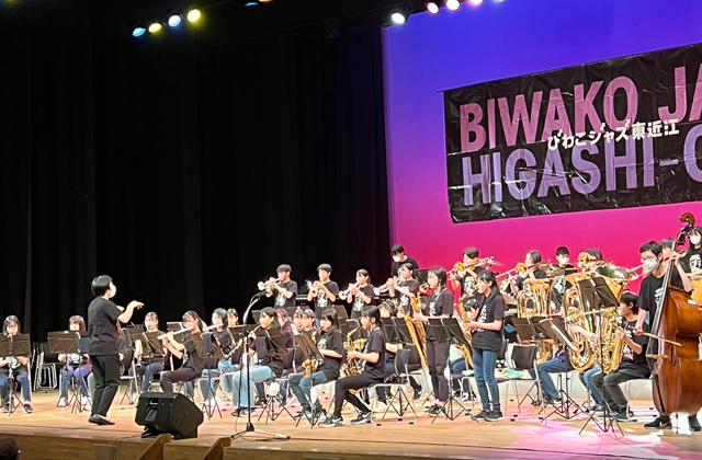 当日は、コロナ禍で十分な演奏機会に恵まれなかった地元の中学・高校の吹奏楽部とジャズオーケストラ部の7団体が、若者らしいさわやかな演奏を披露、さらにアマチュアバンドやプロ奏者のカルテットが出演した。観客約900人が市内外から来場し、軽快なリズムに心躍らせた。