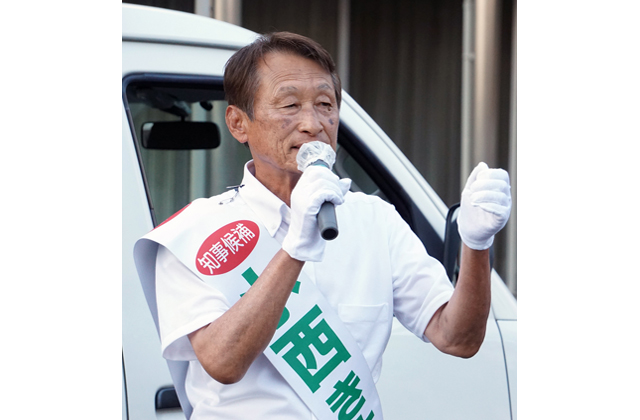 街宣活動では、住宅地の路地などにも街宣車を回し、かなり高い頻度でスポット演説を繰り返し実施。要所ごとでは夜に個人演説会を開き、地域住民らに「県知事は国政の間違いから県民を守る防波堤の役目を果たさなければならないが、現県政は国政の言いなり」と述べ、「国の悪政にモノが言え、県民の願いをかなえる知事になる。知事が代われば暮らしが良くなる」と熱く語っている。