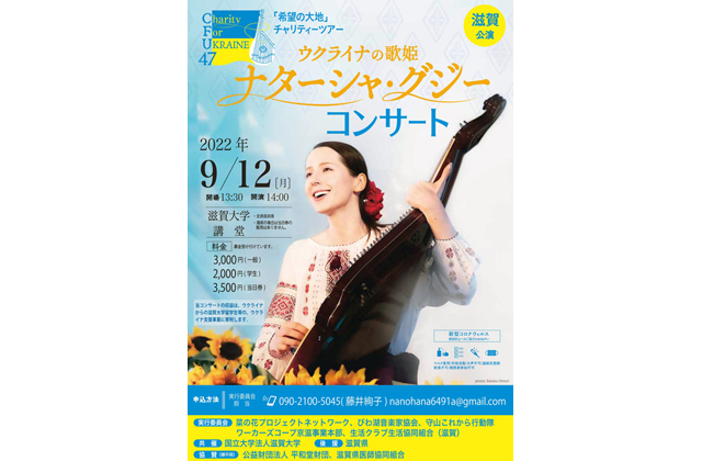 県では、市民グループ「菜の花プロジェクトネットワーク」、びわ湖音楽家協会、守山これから行動隊、ワーカーズコープ京滋事業本部、生活クラブ生活協同組合(滋賀)のメンバーらが滋賀公演実行委員会を結成、ウクライナからの避難者をいち早く受け入れることを表明した滋賀大学と共催で開催する。