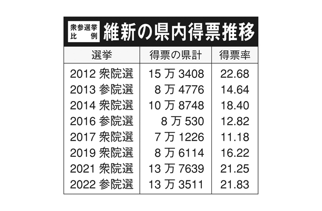 ―今夏の参院選でも躍進し、比例代表の県内得票は自民に次いで高かった。県内の支持状況をどう見るか。