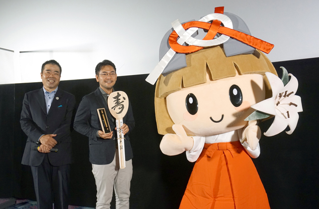 小泉監督は同作以前、近江神宮(大津市)などを舞台とした映画「ちはやふる」でも監督を務め、滋賀県での映画撮影は4作目となる。舞台あいさつで滋賀県での撮影について小泉監督は「映画制作をサポートする体制が整っているし、滋賀県の風景としても日本のどこかの風景としても作品になる。映画の都のような感じで、盛り上がっていったら個人的にはうれしい」と語った。また、今回の映画制作を記念し、三日月大造知事から記念品としてヨシで作られた筆ペン、ロケ地を代表し多賀町のマスコットキャラクター・たがゆいちゃんから多賀大社のお守り・お多賀杓子が贈られた。