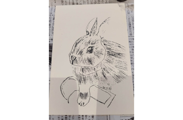 一方、去る12月11日には、東京日本橋の首都圏情報発信拠点「ここ滋賀」におきまして、ガリ版芸術家神崎智子氏を講師に「ガリ版体験ワークショップ」が開催されました。参加された9名は皆「ガリ版」初体験でありましたが、来年の干支である「ウサギ」や、人気アニメのキャラクター等を、ロウ原紙に「ガリガリ」と鉄筆でこすり製版した後、ローラーでの印刷を楽しんでおられ、大変満足度の高い企画となりました。