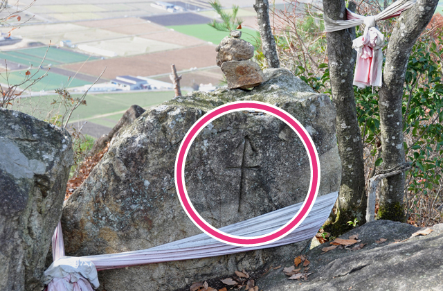 教えられた岩戸山の旗振り場に登ってみた。十三仏堂の前から少し登った地点である。大きな岩に紅白の布が巻かれていて、岩に西方を指す矢印が彫ってあるのを見つけた(その後、標識が建てられ分かりやすくなった)。これは明らかに野洲・田中山方面を指している。また、最初の岩場から西方に10メートルほど下りた岩場にも、近江八幡方面を指した矢印が彫られているのを見つけた。のちに柴田昭彦さん(寝屋川市)が、近江八幡市長田町方面を指していたことを『近江八幡・ふるさとの昔ばなし』の記述をもとに明らかにされている。