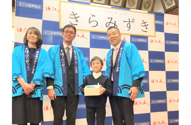 名前は、近江八幡市の小学2年生が考えてくれたもので、「琵琶湖を守る滋賀県から誕生する新しい近江米が、未来に向かってキラキラと輝き続けられるように」という願いが込められています。