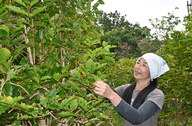 それから24年。農園は、もとみさんに代替わりし、コーヒー栽培を中心に農園経営を続けている。ピーク時には、山の傾斜地に1300本のコーヒーの木を栽培し、年間2トンの収穫があったが、3年前の台風で土砂崩れが発生し、500本ほど失った。また、昨年4月の台風で開花した花が全て飛散する被害に見舞われ、今期の収穫はほとんどできなかった。