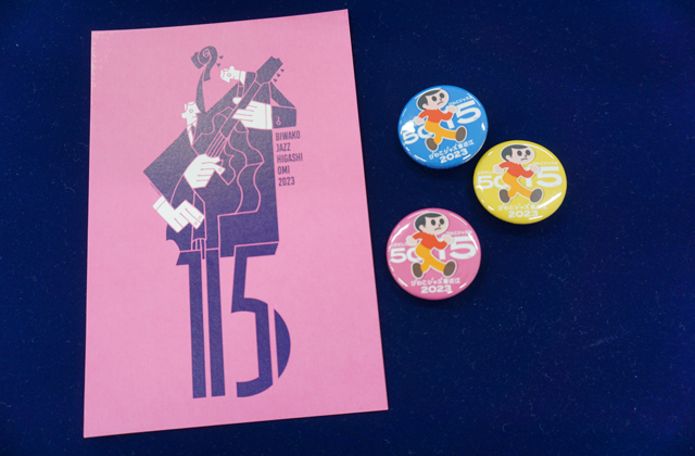 なかでも缶バッジは、東近江発祥の「とび太くん」と同フェス初の公式コラボグッズとなるスペシャルバージョン。今年はとび太くん誕生から50年かつ、びわこジャズ東近江15周年のメモリアルイヤーであることから企画。信号機をイメージした青、黄、赤の計3種を製作した。