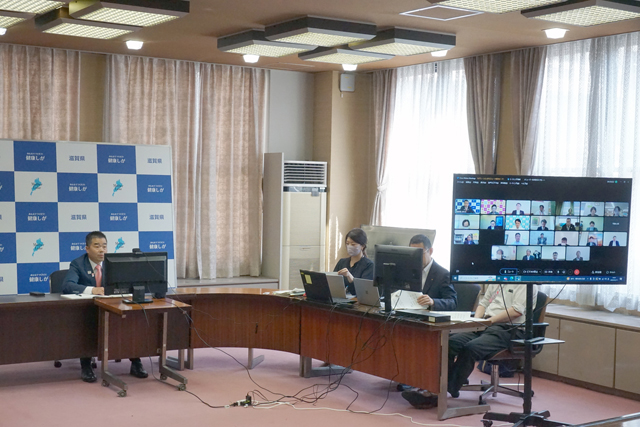 県庁からWEBを介して出席した三日月大造知事は「県では『文化芸術×共生社会プロジェクト』を展開し、芸術文化と福祉など分野の垣根を越えた関係者の連携や共同、共生社会づくりに向けて、多くの人々に気づきと相互理解を生み出してこられた。万博に向けても夢を持ち、みなさんと力を合わせて取り組みを進めていきたい」と語った。