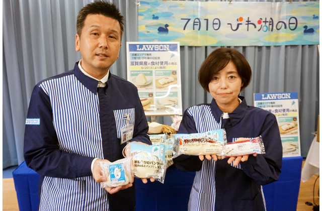 【全県】 県が制定する7月1日「びわ湖の日」にちなみ、県と連携協定を締結している平和堂(本社・彦根市西今町)とローソン(本社・東京都品川区)が「びわ湖の日」の前後で県産素材を用いた商品を販売する。