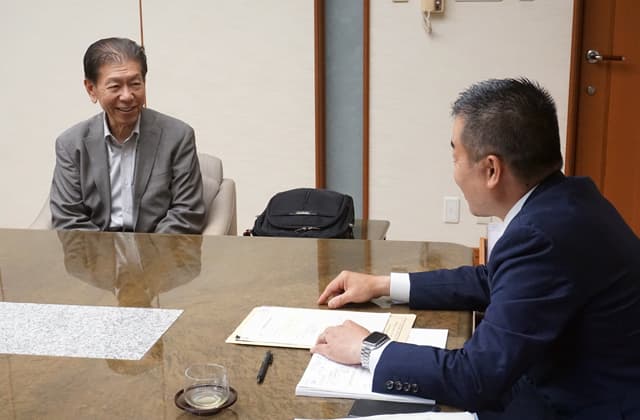 三日月知事は今年が県とミシガン州の友好協定締結55周年に当たることに触れ、「節目ごとをこの関係を大事にしていくためにも、喜んで最大限協力します」と応じた。