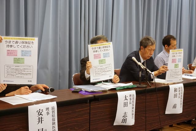 このほど、同協会理事らが県庁で記者会見を開き、同調査結果を報告、「現場の負担が増えている」とし、「医療機関を利用する際は、今まで通り健康保険証を持参してほしい」と呼びかけた。