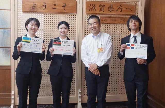 3人は県から県の代表として赴任国での県の周知と国際交流のきっかけを作り、帰国後、県民のボランティアへの関心や赴任国に対する国際理解の推進にも努める「しが国際協力親善大使」にも委嘱された。活動の様子は随時、県のホームページ上で紹介される。