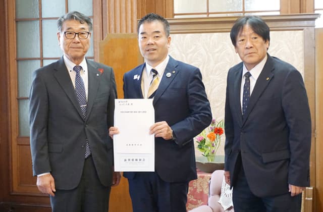 【全県】 県町村会(会長・伊藤定勉豊郷町長)が県内各町の実態や直面する課題対策を県の来年度予算編成や施策に反映させるための要望を取りまとめ、このほど伊藤会長と副会長の久保久良多賀町長が代表して県庁で三日月大造知事に提出した。