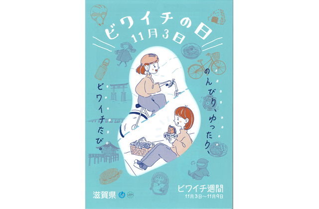 県によると、実施2回目となる今年の「ビワイチの日」は「のんびり、ゆったり、ビワイチたび」がテーマ。「子どもや若年層、女性などにもより一層興味を持たれるようなイベントを企画した」とし、公式パンフレットのメインデザインは成安造形大学(大津市)の学生らによる「自転車でゆったりと滋賀を周遊してもらえるようなイメージ」を採用した。