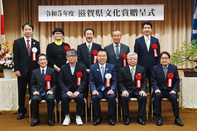 【県】 県民の文化の向上発展に対する顕著な功績や将来が期待される人や団体を県が表彰する「滋賀県文化賞」などの今年度受賞者が決定し、このほど県庁で贈呈式が催された。
