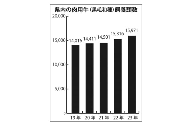 県畜産課では「畜産クラスター事業(注)を活用した事業拡大などで、県内の近江牛の飼養頭数が増加したのは事実だが、そのことだけで需給バランスが崩れているとは言えない。この10月から前年同月比が6・3%増と増加に転じており、11月以降はしが割、12月末まではふるさと納税などの需要が見込まれるからだ」としている。