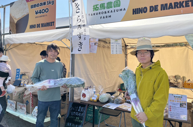 【日野】 日野町鎌掛で、若手農業者が伝統野菜・日野菜の栽培に取り組んでいる。東近江市出身の前田拓郎さん(26)と従兄弟の一馬さん(30)は、昨年2人で「拓馬農園」を立ち上げ、日野菜栽培に挑戦して1年目。生産、出荷、町内イベント出店、日野菜漬け体験教室の開催など、精力的に活動している。生産者減少が課題となっている伝統野菜栽培に新規参入した思いをたずねた。(矢尻佳澄)