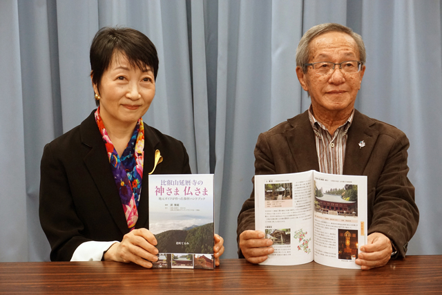 県庁で開いた出版記者会見で小野寺さんは「比叡山には知られていないお堂や石仏がたくさんある。それらを分かりやすく紹介しています」と述べ、花咲さんは「この本が私の一隅を照らしつつ、地元活性化の一助になれば」と期待を語った。