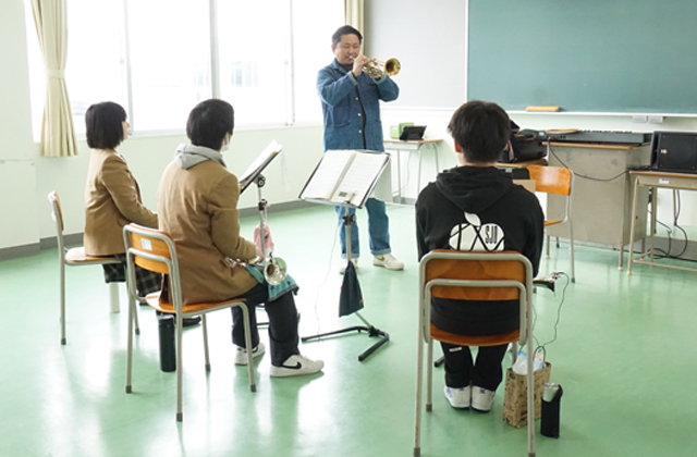レッスンを終えたドラムス担当の渡邊樹希さん(1年)は「今の自分に足りないものを学ぶことができた」と充実感を浮かべ、トランペット担当の大西望蒼さん(2年)は「直接相談し、指導を受けて、演奏の悩みを解消できたし音色もよくなった」と声を弾ませた。