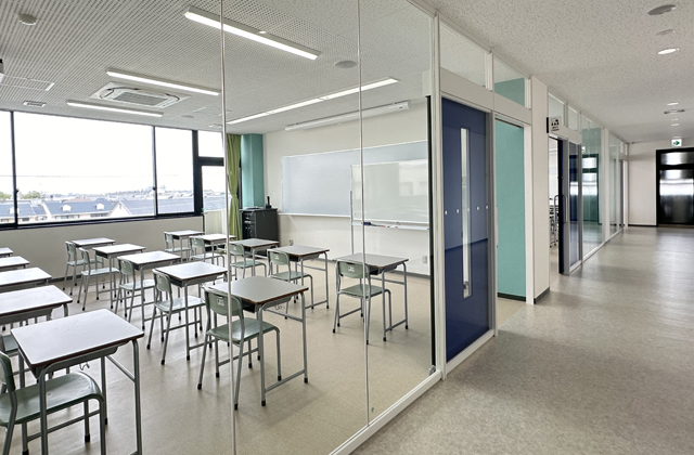 1階から3階までに6つの教室と実習室を配置し、1階には市民も利用可能な図書閲覧コーナーなども配備。4階の大ホールも市民への公開講座を開催するなどして開放するという。