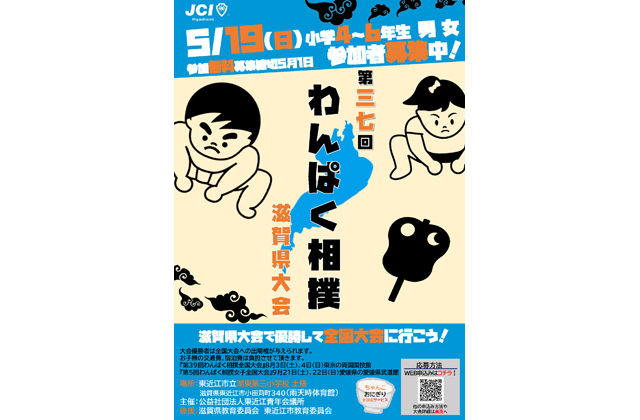 【東近江】 公益社団法人東近江青年会議所は、5月19日に開催する「第37回わんぱく相撲 滋賀県大会」の出場者を募集している。参加無料。