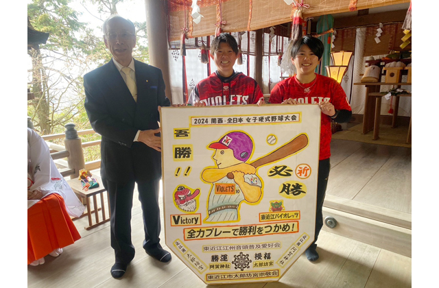 【東近江】 東近江市を拠点に活動する女子硬式野球チーム東近江バイオレッツが今シーズンに向け始動した。6日には、勝運を司る地元の神社「太郎坊宮」を訪れ、必勝を祈願した。