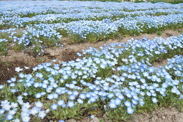 菜の花は「どうぶつのエリア」横のポプラガーデンで約1万本(品種は伏見寒咲)、ネモフィラはドッグランそばのアニマルガーデンで約5千株(同インシグニスブルー)が植えられ、美しい花々を園内各所で見ることができる。