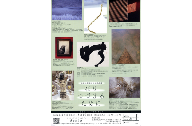 【東近江】「8名の作家による作品展 在りつづけるために」が、レンタルギャラリー&カフェ「エコール」(東近江市八日市清水2丁目)で開かれている。