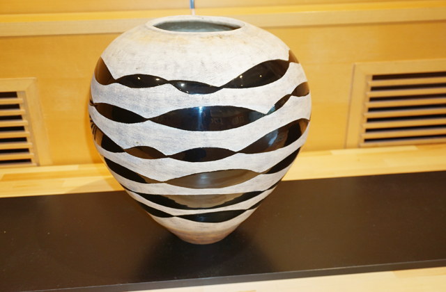 同図書館は「白黒の平面作品である書と、色彩豊かな立体作品である陶との対比が一体感が魅力的。春の花の季節に、桜が結んだ作家のコラボレーションを鑑賞してほしい」とPRしている。
