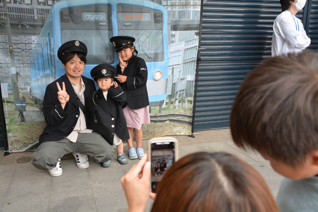 近江鉄道をより知ってもらい、沿線のにぎわい創出を目的に毎年開かれている催しで、近江鉄道が東近江市と連携して開催。会場では、ミニ電車の乗車や運転士の制服を着用した記念撮影など、鉄道に触れる体験が人気を集めた。