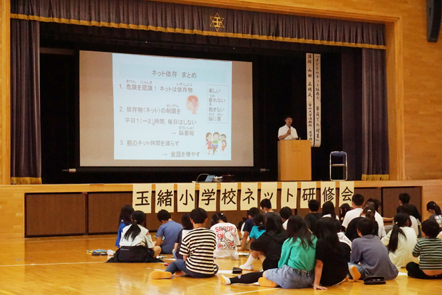 同校では、ネット社会での適切なインターネットとの向き合い方やネット依存を防ぐ方法を学ぼうと、昨年から山田准教授を招き、児童(5・6年生)と希望する保護者、民生委員などを対象に研修会を開催している。