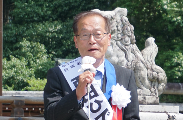また、現コンパクトシティ化構想について、「敷地造成工事が進む新竜王小学校は早くて安全で費用も抑えられる現地建て替えをし、劣悪な冷暖房環境、老朽化の進む給食センターは直ちに建て替えをする。造成中の土地は親子の笑顔があふれる子育て夢パークにする」と中止後の政策を語った。