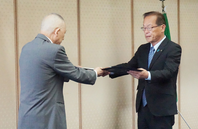開票から一夜明けた17日には町役場で町選管(楠本恭久委員長)から西田氏へ当選証書の授与が行われた。