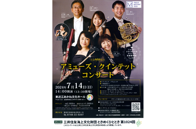【東近江】 東近江市あかね文化ホール(東近江市市子川原町)で7月14日午後2時から「アミューズ・クインテットコンサート」が開催される。