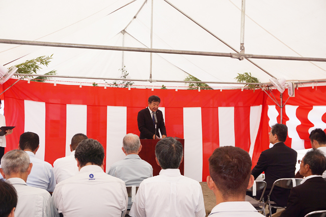 起工式のあいさつで小椋正清市長は、「勉学に励んでもらうのはもちろんのこと、子どもたちが道徳観や郷土愛を身に付けるべく、今後も地域の力添えをお願いしたい」と述べた。
