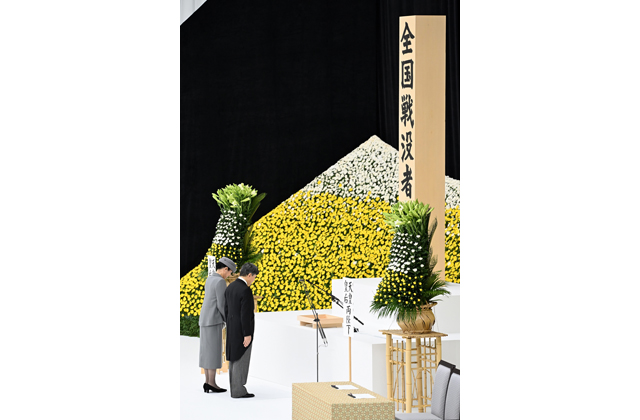【全国】 15日、日本武道館(東京都千代田区)で天皇・皇后両陛下のご臨席の下、全国から遺族代表を招き、政府主催による全国戦没者追悼式が執り行われた。