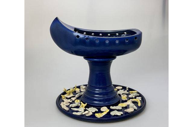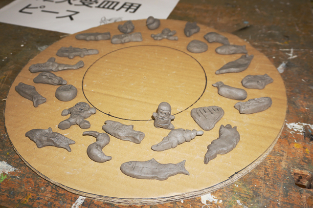炬火受け皿づくりは、6月から県内各19市町の19学校・団体と県立学校で実施されている。玉緒小学校では、県陶芸の森の職員ら3人の指導のもと、児童は粘土を手のひらで伸ばしたあと、つまんだり、鉛筆で成型したりして、ビワコオオナマズやしじみ、飛び出し坊やをかたどった装飾(3~5センチ)を制作した。