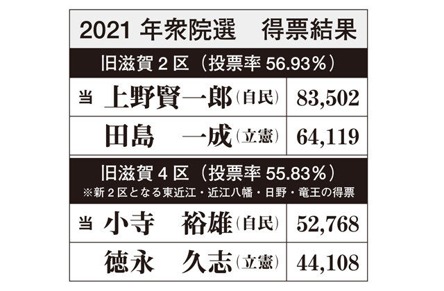 米原市長から国政転身する立憲の平尾は、合併後初となる2005年3月の市長選で初当選し、現在通算4期目。