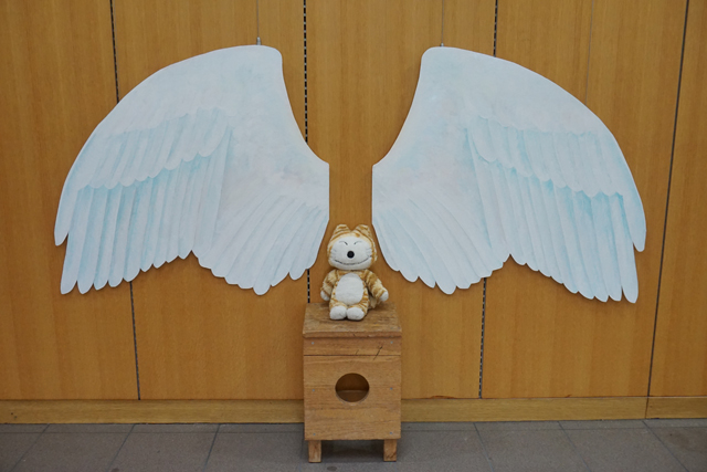 近江八幡市在住の大空さんによる、絵画や立体物などの作品展。 会場入口には、来場者参加型の作品「in the wings」が設置されており、未来へ羽ばたいていく翼をイメージした作品の中央に来場者が立つ(または座る)姿を撮影することで作品が完成する。