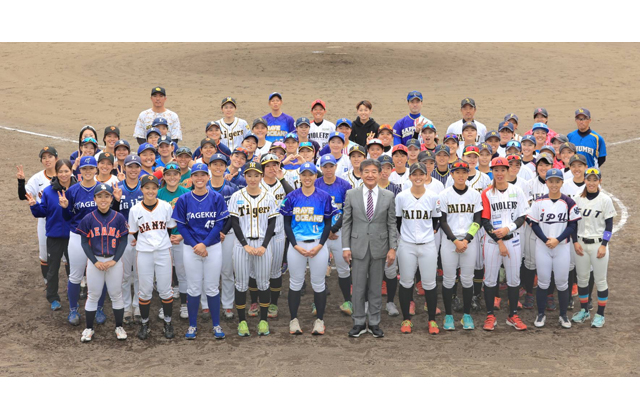 女子硬式野球の関東リーグ、関西リーグの加盟チームほか、今年から全日本大学のチームが加わり、それぞれの選抜総勢60人(3チーム)が集結。総当たりで試合を繰り広げる年に一度の女子野球のオールスターゲームで、全日本女子野球連盟が認定する「女子野球タウン」の東近江市で初めて開催された。