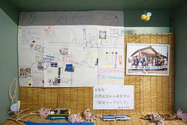 桜川駅のイルミネーションは来年2月末まで。また現在同駅では、蒲生東小学校4年生がつくった「自然災害から命を守る防災マップ」と駅舎清掃活動に取り組んだ朝桜中学生による活動振り返りメッセージの寄せ書きが展示されている。
