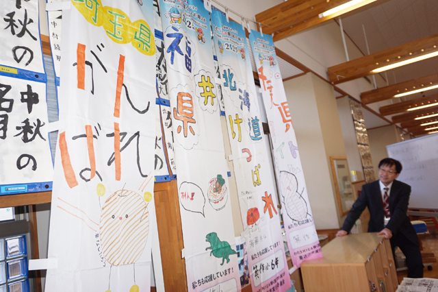 デザインを考えた児童は、「がんばれの文字を目立ちやすくしました。国スポ障スポで東近江に来る選手にがんばってほしいという気持ちを込めました」と話していた。