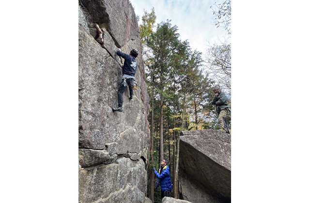 課題と言われる岩場の登攀(とうはん)ルートは全部で約80課題あるといい、初心者から上級者までが楽しめる。交流や憩いの場にもなればと、岩場近くの広場には間伐材などを利用した休憩スペースも設備した。そこで音楽イベントなども開かれたりと、親子連れの姿も多い。