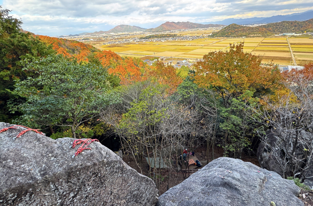 徒歩でも簡単に登れる岩場の上からは平田地区から鈴鹿山系、琵琶湖までが一望できる眺望もあり、トレッキングとしても楽しめる。より広く親しんでもらえるようマナーも注意深く呼びかけている。