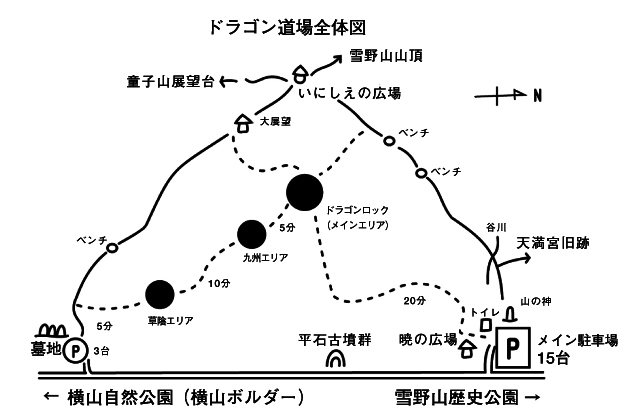 ※注・ドラゴン道場がある岩場は整備などのため現在は封鎖中。最新情報はインスタグラムの同クラブ公式(YUKINOYAMA_CLIMINGCLUB)を参考。