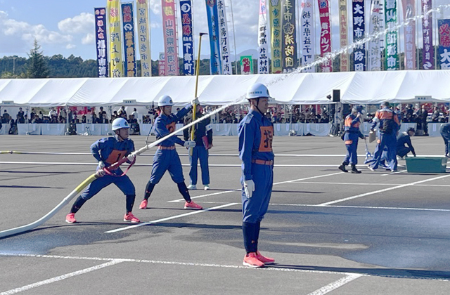 【日野】 宮城県総合運動公園で開かれた「第30回全国消防操法大会」でこのほど、日野町消防団が小型ポンプの部で準優勝を果たした。